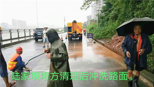 2018年6月29日夜間,雅安市遭遇強降雨,此次強降雨期間,為保障全市群眾生命財產安全,市政公司共出動人員60余人次,出動搶險車輛11輛、管道疏通車1輛、挖掘機1輛、裝載機1輛、拖車1輛、抽水機2臺、防洪沙袋30余個,確保了道路、市政排水設施暢通。