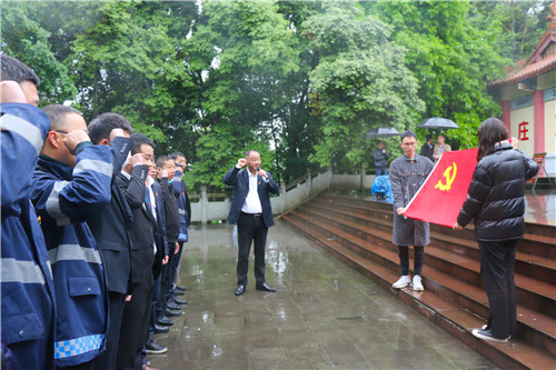 在肅穆的烈士紀念堂前,全體黨員重溫入黨誓詞,黨員代表向革命烈士敬獻花籃,全體人員默哀致敬,并依次敬獻鮮花,沉痛悼念革命先烈。