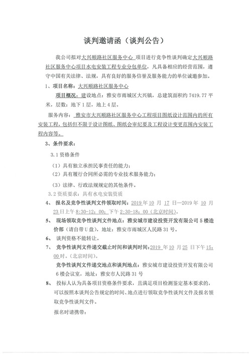 大興順路社區(qū)服務(wù)中心項(xiàng)目水電安裝工程專(zhuān)業(yè)分包單位競(jìng)爭(zhēng)性談判公告