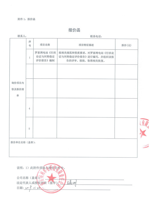 羅家灣電站《行洪論證與河勢(shì)穩(wěn)定評(píng)價(jià)報(bào)告》編制詢價(jià)函