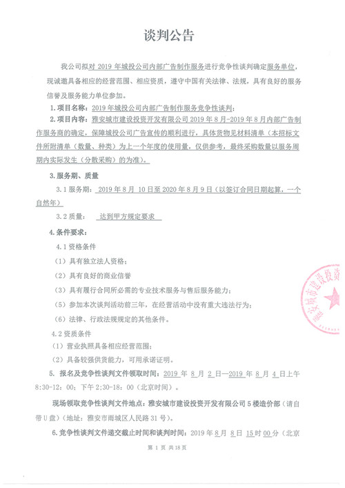 2019年城投公司內(nèi)部廣告制作服務(wù)競(jìng)爭(zhēng)性談判公告