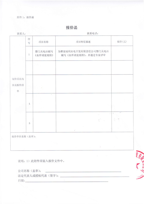 雅安城利水電開發(fā)有限責(zé)任公司禁門關(guān)電站編寫《水庫(kù)調(diào)度規(guī)程》競(jìng)爭(zhēng)性談判公告