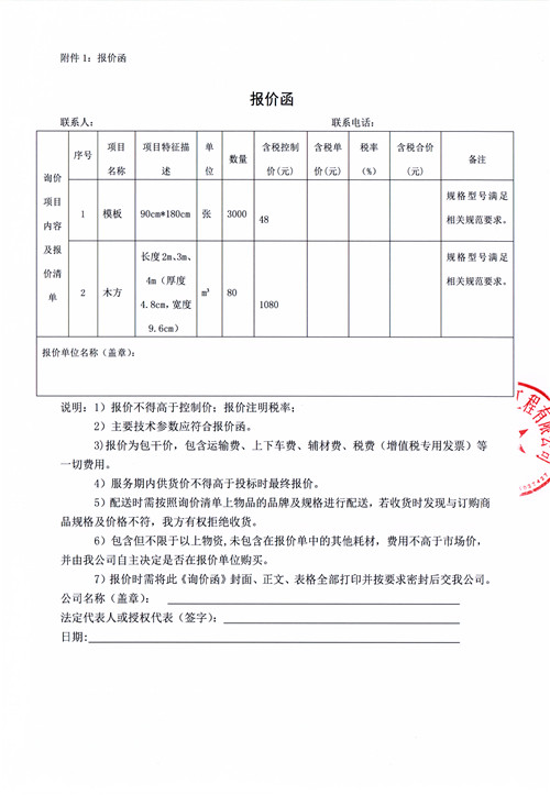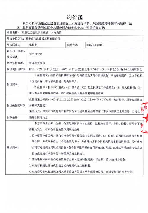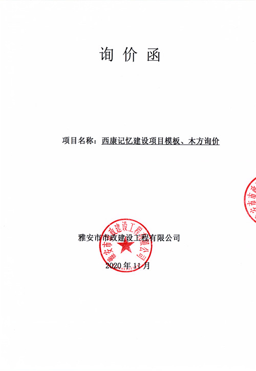 市政公司西康記憶建設項目模板、木方詢價函