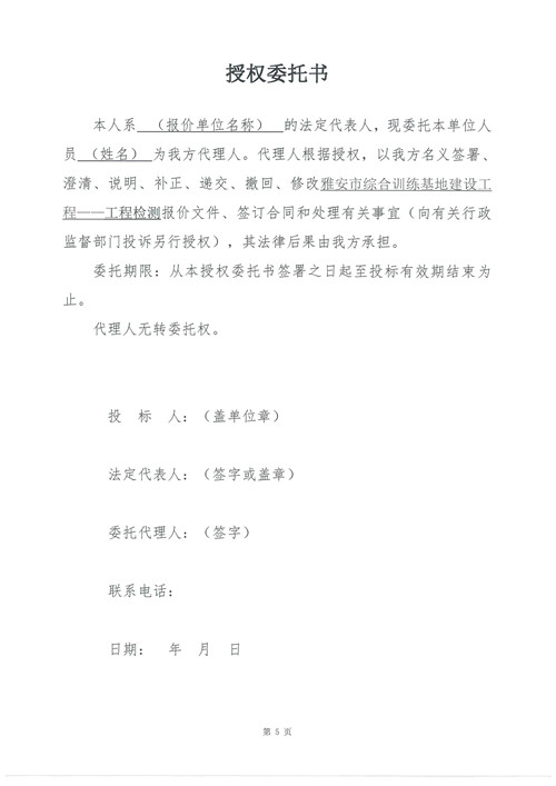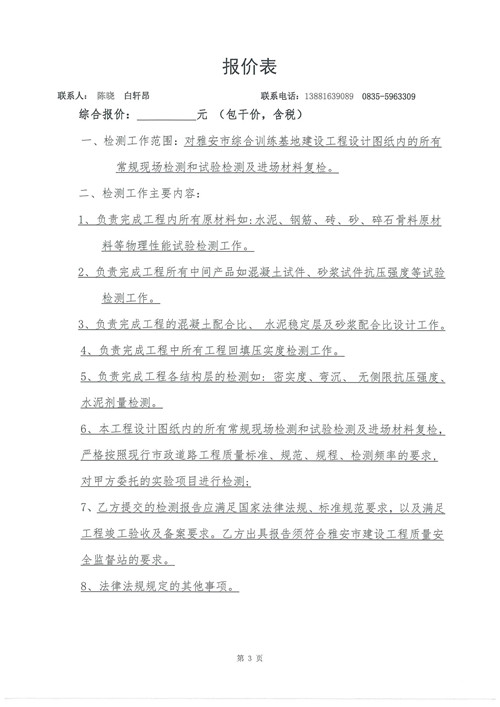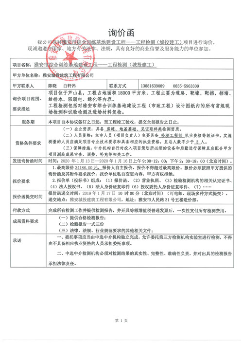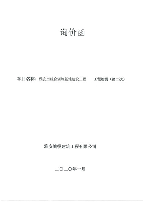 雅安市綜合訓練基地建設工程——工程檢測詢價函(第二次)