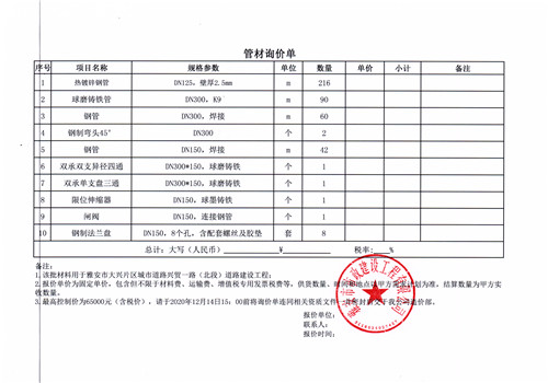 市政公司興貿(mào)一路鋼管鋼制配件詢價(jià)單