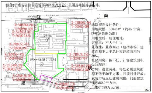 1.雅安市創(chuàng)業(yè)商城周邊區(qū)域改造設計范圍及規(guī)劃設計條件