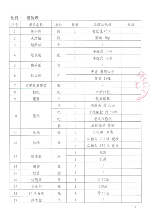 雅安城市建設(shè)投資開(kāi)發(fā)有限公司清潔用品詢價(jià)函