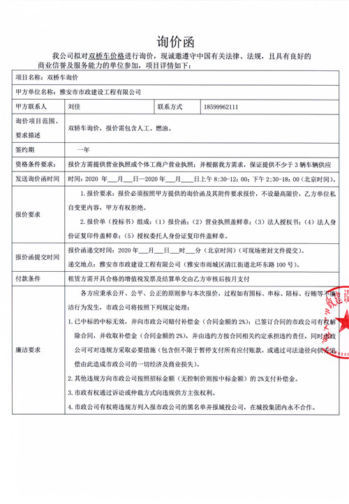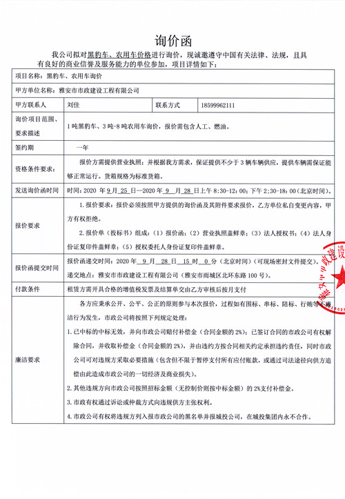 詢(xún)價(jià)函(黑豹車(chē)、農(nóng)用車(chē)、雙橋車(chē)租賃)