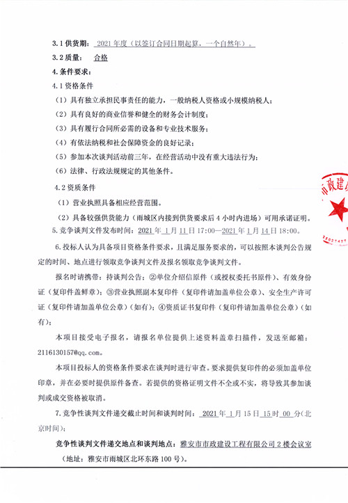 雅安市市政建設(shè)工程有限公司2021年井圈井蓋采購項(xiàng)目競爭性談判公告