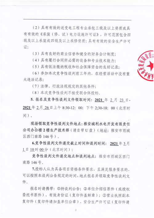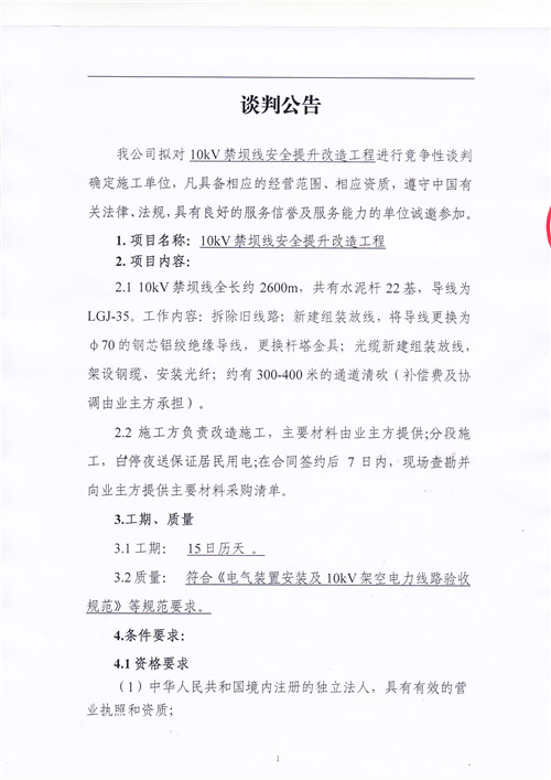 城利水電公司10kV禁壩線(xiàn)安全提升改造工程競(jìng)爭(zhēng)性談判公告