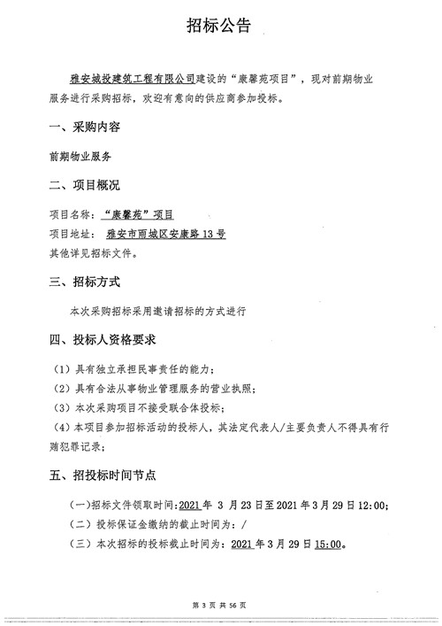 城投建工公司康馨苑項目前期物業(yè)服務(wù)招標(biāo)公告