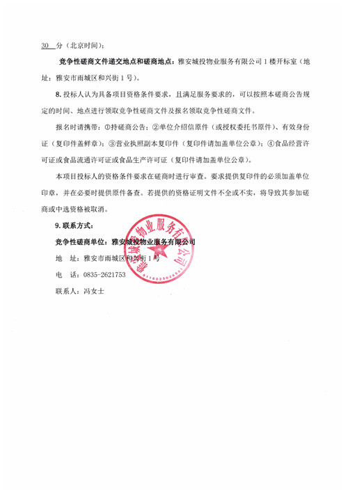 城投物業(yè)關于城投公司食堂食材(肉類)采購項目競爭性磋商公告
