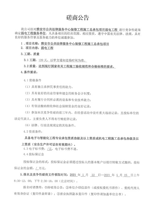 城投建工公司雅安市公共法律服務(wù)中心裝修工程施工總承包項(xiàng)目弱電工程競(jìng)爭(zhēng)性磋商公告