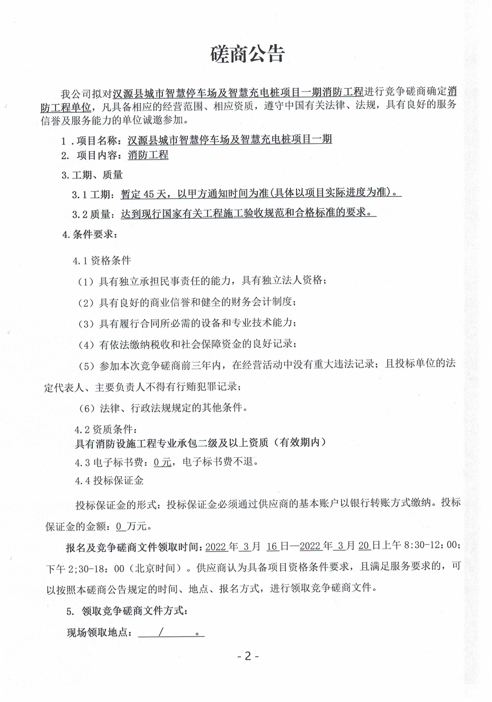 漢源縣城市智慧停車場及智慧充電樁項目一期消防工程磋商公告