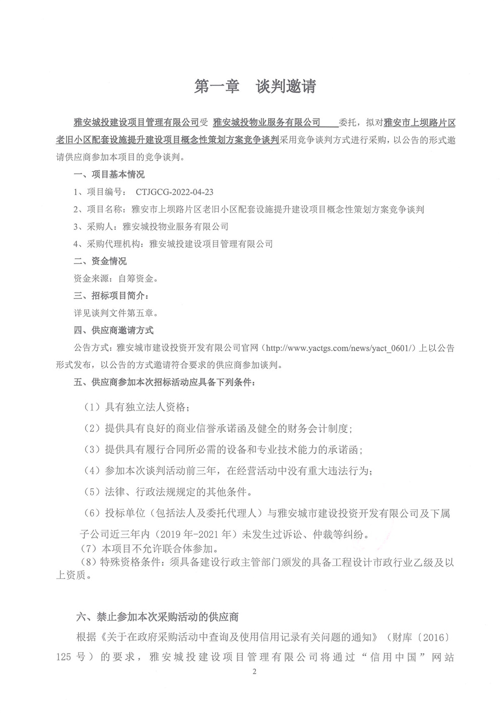 雅安市上壩路片區(qū)老舊小區(qū)配套設(shè)施提示建設(shè)項目概念性策劃方案競爭談判邀請