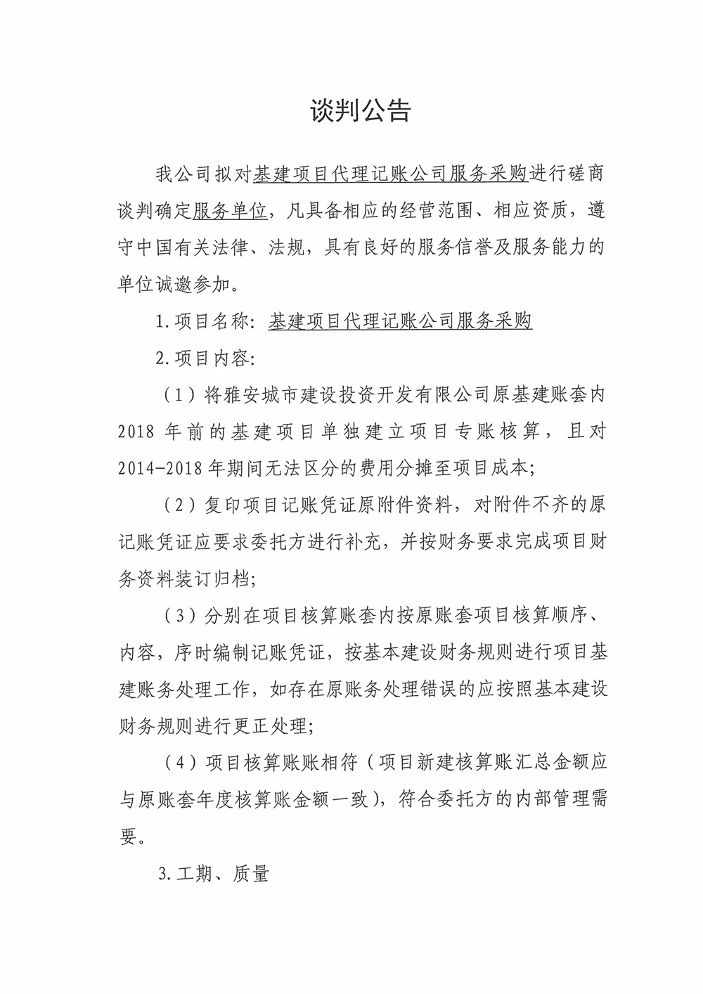 城投公司基建項(xiàng)目代理記賬公司服務(wù)采購(gòu)磋商談判公告
