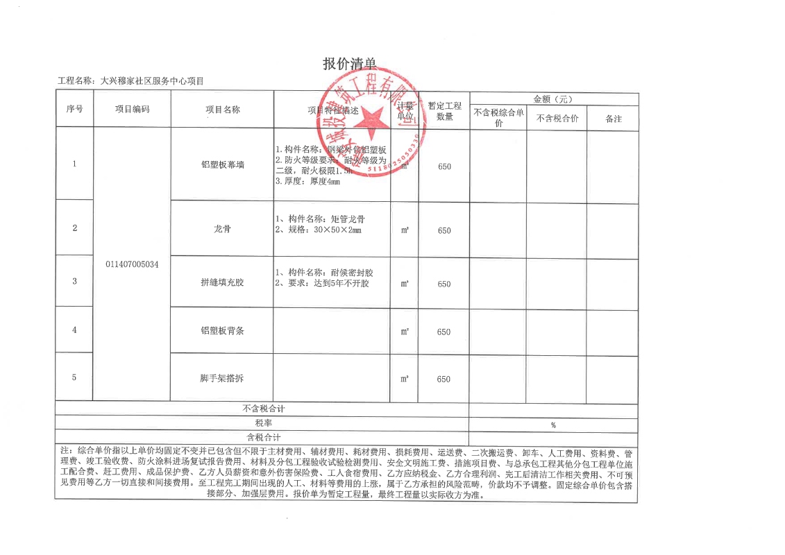大興穆家社區(qū)服務(wù)中心項(xiàng)目鋼結(jié)構(gòu)外包鋁塑板競(jìng)價(jià)公告(第三次)