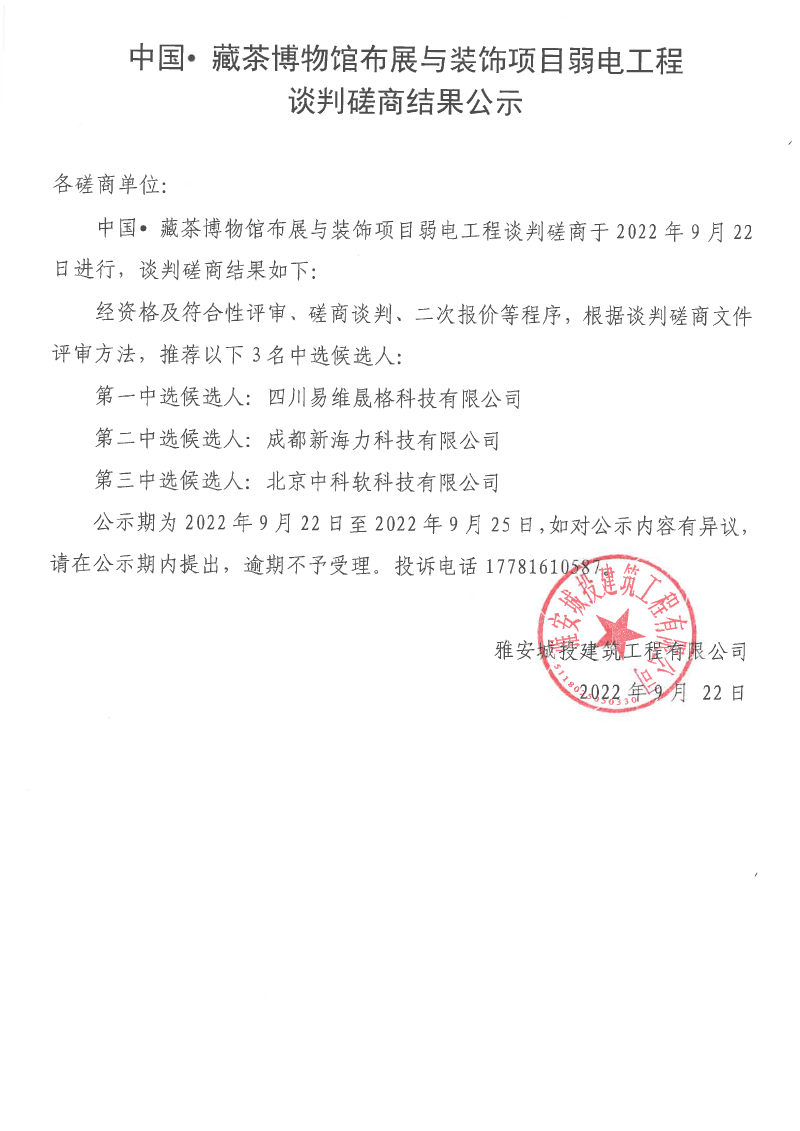 中國(guó)• 藏茶博物館布展與裝飾項(xiàng)目弱電工程談判磋商結(jié)果公示
