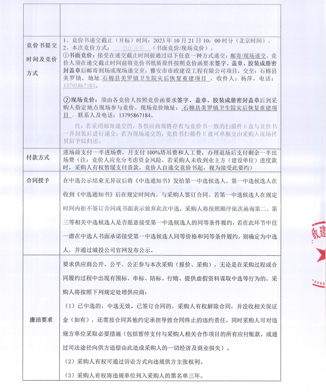 石棉縣美羅鎮(zhèn)衛(wèi)生院災(zāi)后恢復(fù)重建項(xiàng)目塔機(jī)租賃采購競價公告