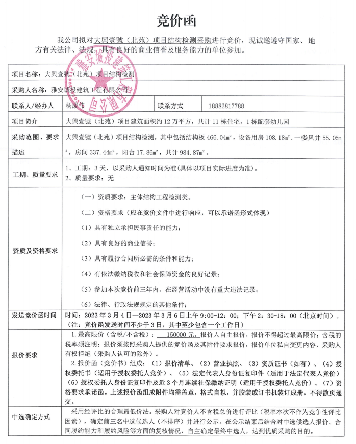 大興壹號(hào)(北苑)項(xiàng)目結(jié)構(gòu)檢測(cè)競(jìng)價(jià)采購(gòu)競(jìng)價(jià)公告