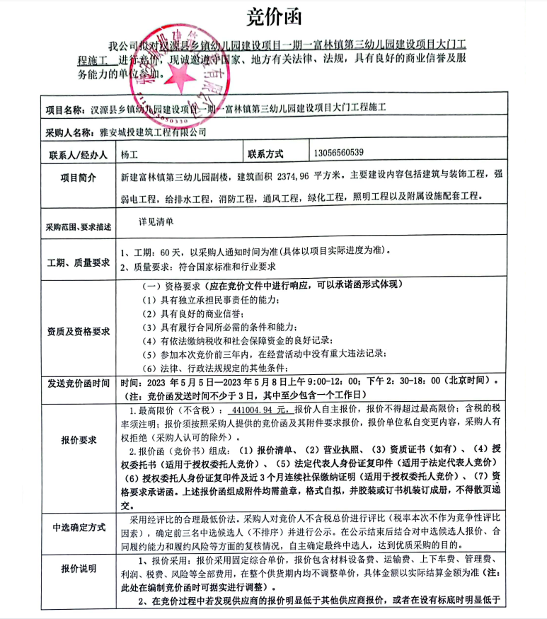 漢源縣鄉(xiāng)鎮(zhèn)幼兒園建設(shè)項(xiàng)目一期一富林鎮(zhèn)第三幼兒園建設(shè)項(xiàng)目大門工程施工競價(jià)公告