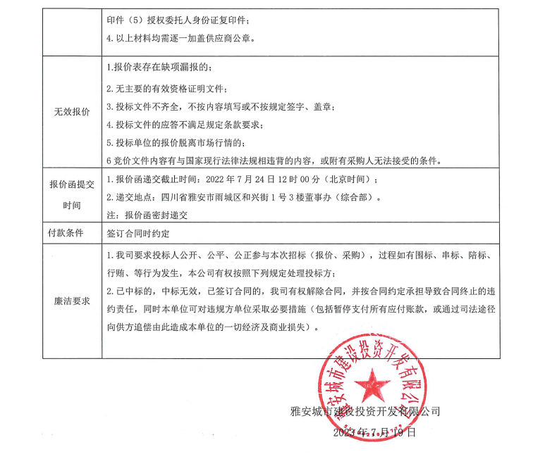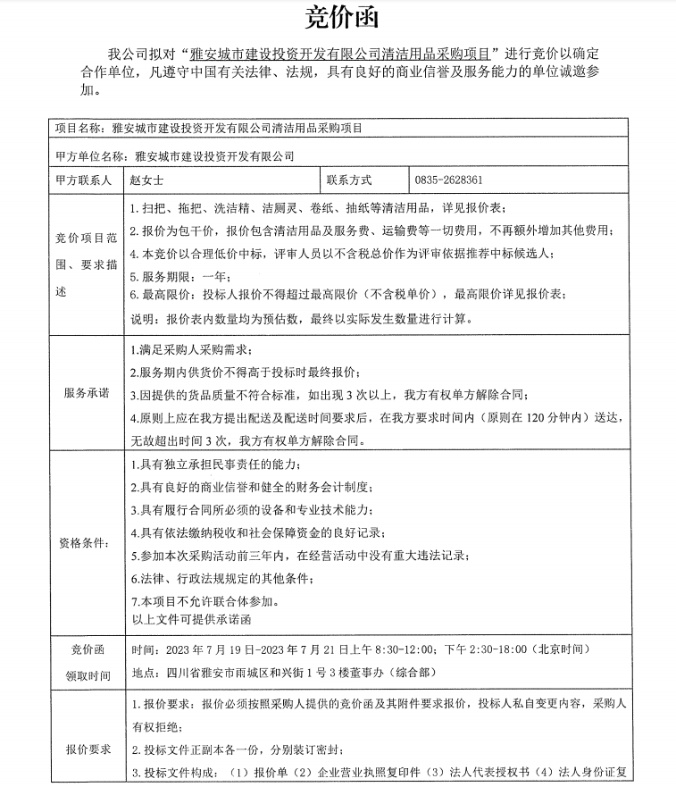雅安城市建設(shè)投資開發(fā)有限公司清潔用品采購(gòu)項(xiàng)目競(jìng)價(jià)公告