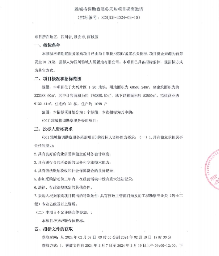 雅城格調勘察服務采購項目磋商邀請公告