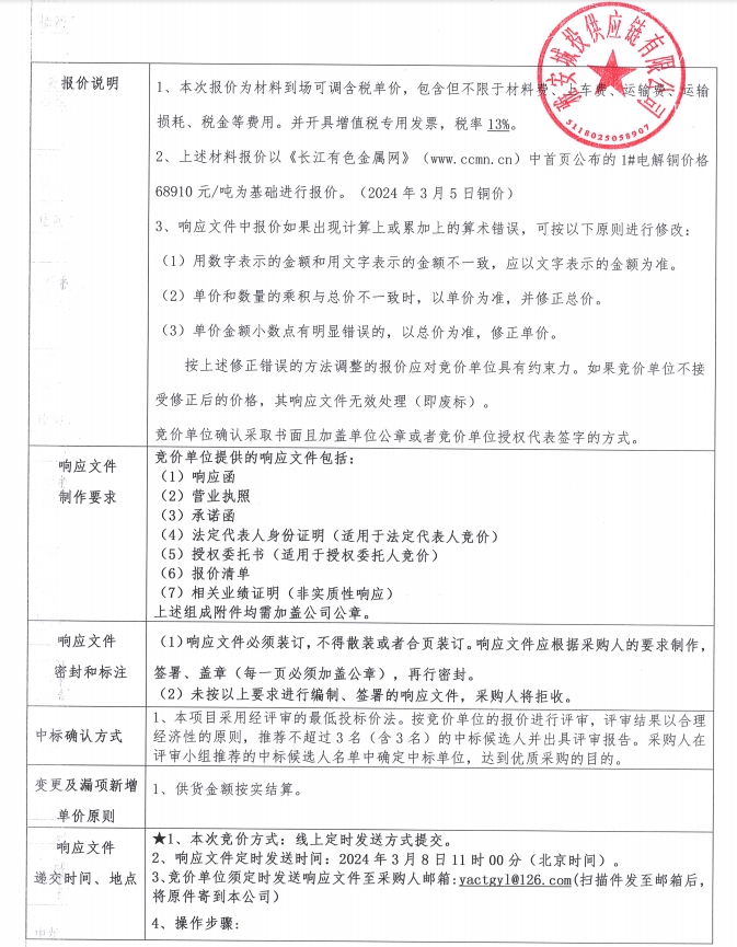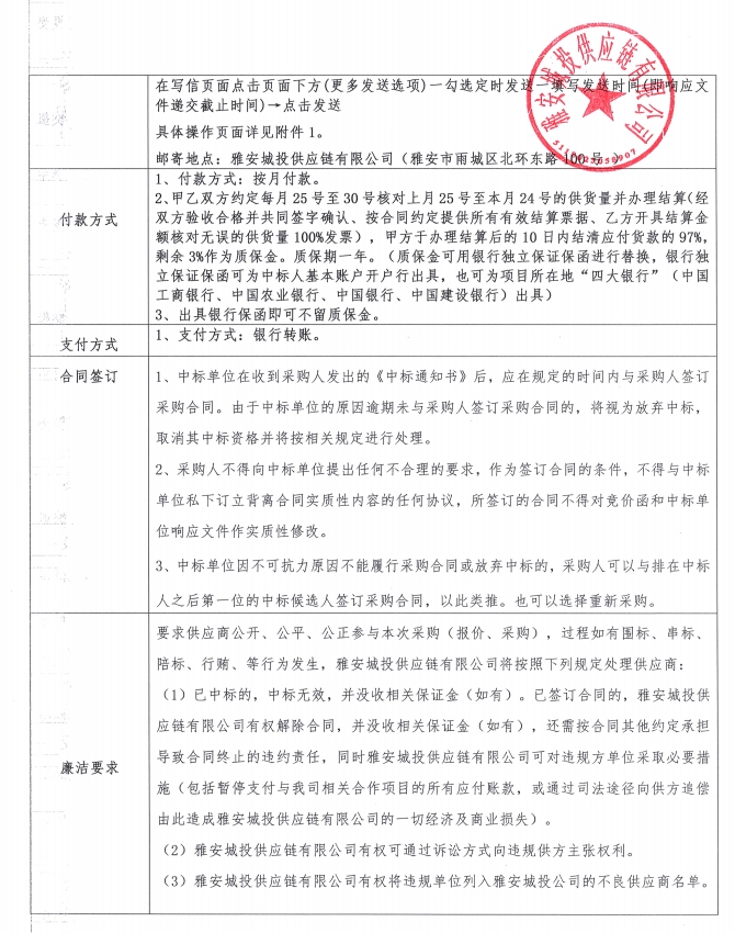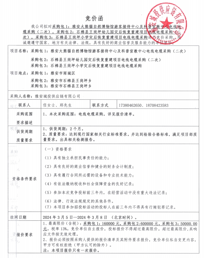 雅安城投供應(yīng)鏈有限公司電線電纜采購(gòu)競(jìng)價(jià)公告