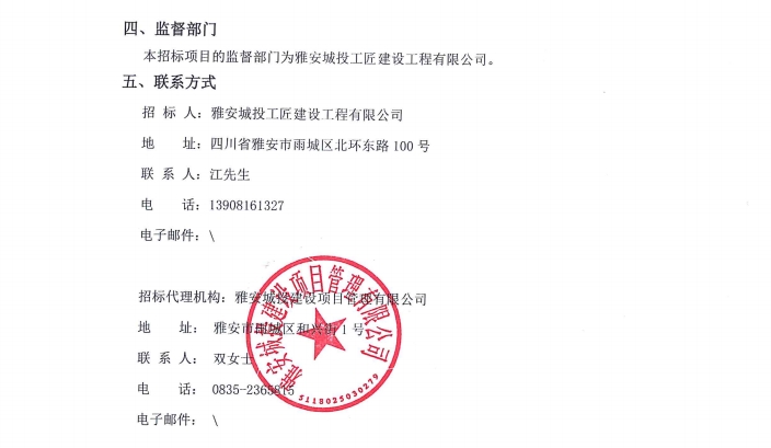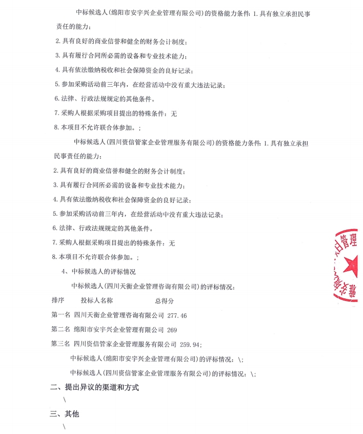 雅安城投工匠建設工程有限公司水利水電施工總承包二級資質申辦咨詢服務采購項目中標候選人公示