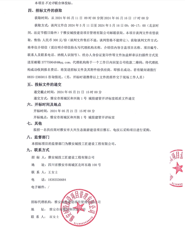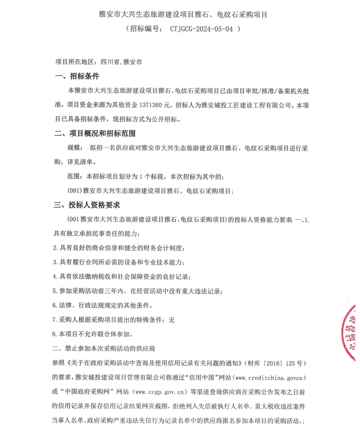 雅安市大興生態(tài)旅游建設(shè)項目雅石、龜紋石采購項目公告