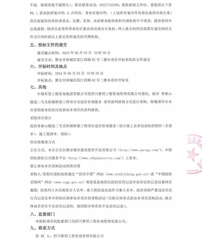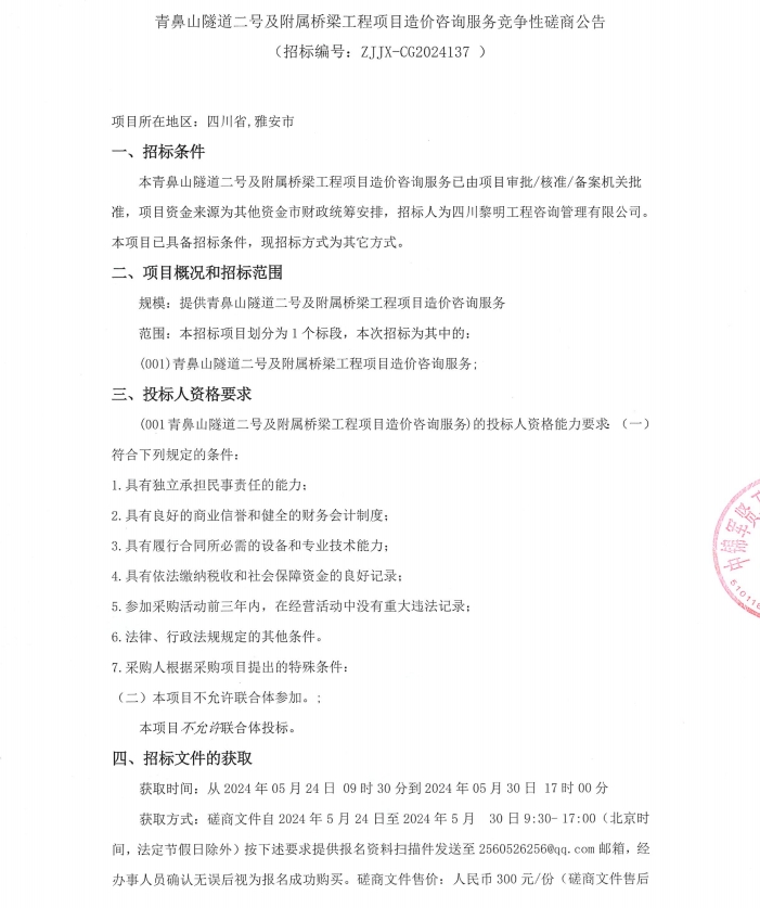 青鼻山隧道二號及附屬橋梁工程項目造價咨詢服務(wù)競爭性磋商公告