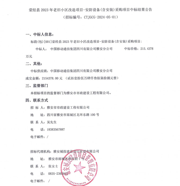 滎經(jīng)縣2023年老舊小區(qū)改造項目-安防設備(含安裝)采購項目中標結(jié)果公告