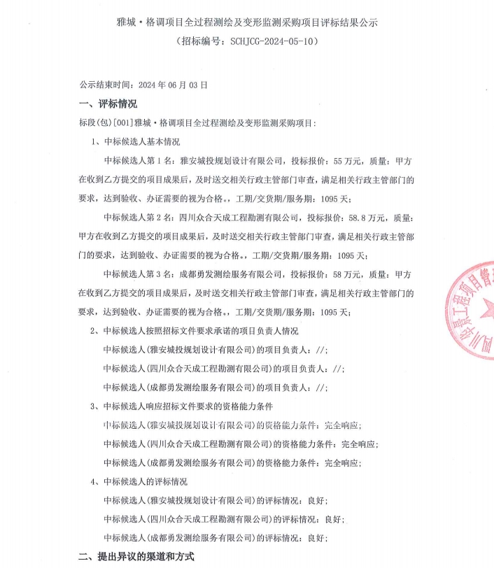 雅城·格調(diào)項(xiàng)目全過(guò)程測(cè)繪及變形監(jiān)測(cè)采購(gòu)項(xiàng)目評(píng)標(biāo)結(jié)果公示