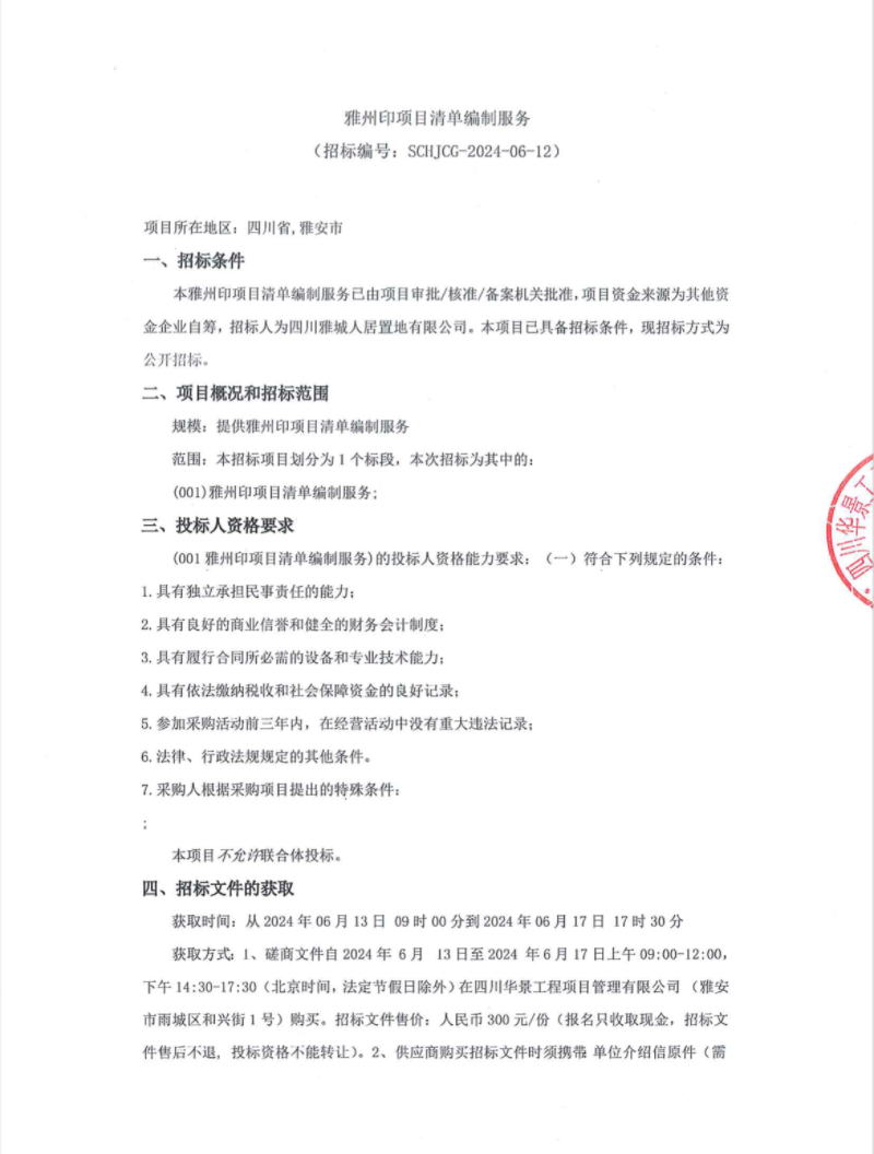 雅州印項(xiàng)目清單編制服務(wù)公告