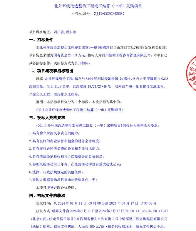 北外環(huán)線改造整治工程竣工結(jié)算(一審)采購(gòu)項(xiàng)目公告