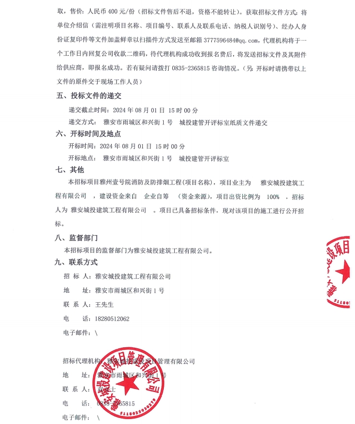 雅州壹號院項(xiàng)目消防及防排煙通風(fēng)工程公告