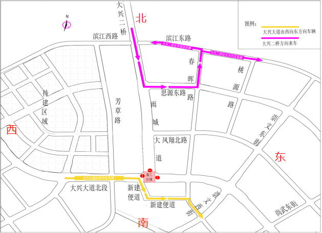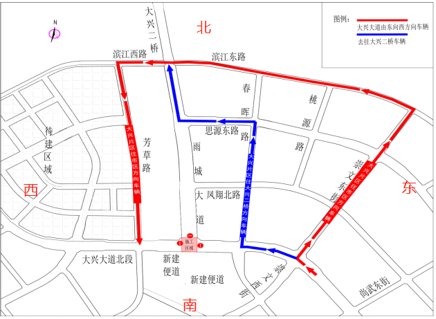 2.大興老場鎮(zhèn)片區(qū)前往大興二橋方向車輛:老場鎮(zhèn)-春暉路-思源東路-大興二橋